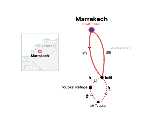 Challenging mountain hikes to summit Mount Toubkal (2 days). All transport between destinations and to/from included activities.