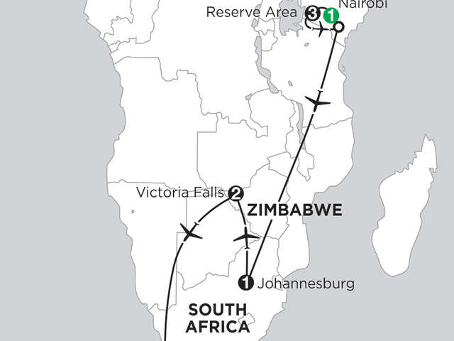 Africa is home to some of the world’s most marvelous sites, most endangered species, and most incredible people. And it’s time for YOU to experience it all! We coordinate the details for you—from hotels and transportation, to sightseeing and most meals, Monograms makes it easy to help you hit Africa’s biggest highlights.Your African safari starts when you arrive in Nairobi. We can pick you up at the airport and help you manage the hassle of getting to your hotel. The next day, after an included breakfast, adventure off on your first game drive at Maasai Mara National Reserve – the most famous game area in Kenya. This reserve has a strong permanent population of wildlife, so stay on the lookout for the “Big 5” – lion, leopard, elephant, rhino, and Cape buffalo. You will spend two full days at this reserve. Next, fly south for a quick stop in South Africa’s capital city of Johannesburg before heading to Zimbabwe. A trip to Africa wouldn’t be complete without experiencing Victoria Falls. We’ve arranged for you to have a private, guided walk of the mighty falls and a sunset cruise on the Zambezi River, where you’ll have an opportunity to take photographs of the wildlife and sip on a drink as you watch a spectacular African sunset—the perfect ending to a day of discovery! Finally, fly into beautiful Cape Town where your Local Host® will take you on a private tour of the city’s highlights. Ascend to the top of Table Mountain, visit the penguins at Boulders Beach, and stop at the Cape of Good Hope – the southernmost point on the African continent. The following day is free to explore on your own or you can join an optional excursion. Consider a visit to the beautiful Cape winelands for a magical day winery visits and tastings. From June to December you can also choose to go whale-watching in Hermanus, the self-proclaimed whale-watching capital of the world.With Monograms, your dream vacation to Africa doesn’t feel so far out of reach. With all of the details arranged for you, all you have to do is pack your bags and prepare for this once-in-a-lifetime experience!