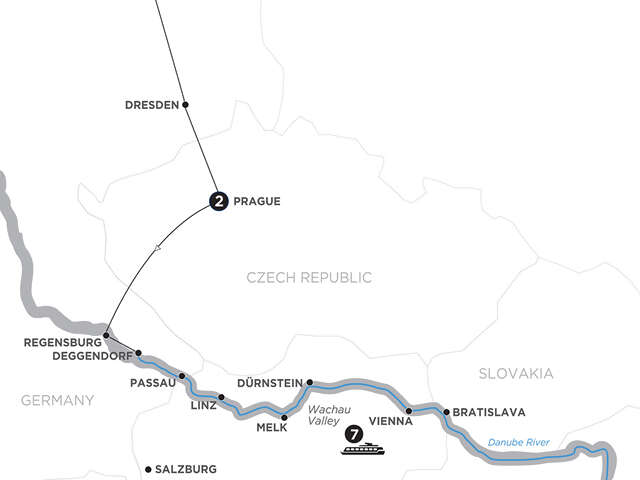 Day 1 Berlin: welcome to Germany Day 2 Berlin: guided sightseeing, see the Brandenburg Gate, visit Kaiser Wilhelm Memorial ChurchDay 3 Berlin—Dresden—Prague: guided walk in Dresden, visit the courtyard of the Zwinger Palace; motorcoach transfer to PragueDay 4 Prague: guided sightseeing, see the Astronomical Clock and visit Hradčany Castle groundsDay 5 Prague—Regensburg, Germany—Deggendorf (Embarkation): travel by motorcoach to Regensburg, guided sightseeing; transfer to Deggendorf; onboard welcome receptionDay 6 Passau, Austria: guided walkDay 7 Linz: guided sightseeingDay 8 Melk—Wachau Valley—Dürnstein: guided visit of the Benedictine Abbey in Melk; cruise through the Wachau Valley; choice of guided walk, or hike up to the castle ruins in Dürnstein; wine tastingDay 9 Vienna: guided tour, see Kunstkammer collection; choice of additional sightseeing, or a complimentary museum ticketDay 10 Bratislava: guided sightseeing, visit St. Martin’s CathedralDay 11 Budapest: guided tour, see Heroes’ SquareDay 12 Budapest (Disembarkation): your vacation ends this morning
