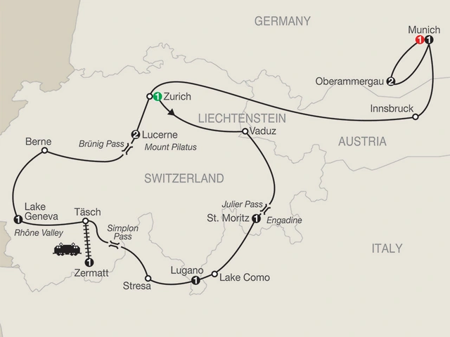 ZURICHWelcome dinner; orientation walk of the Old Town; [LF] taste Sprüngli chocolate pralinesVADUZVisit the capital of LiechtensteinLAKE COMOPicture stopSWISS-ITALIAN LAKE DISTRICTTÄSCH–ZERMATT–TÄSCHBy mountain trainBERNEGuided walking tour, stop at the Bear Park and enjoy a panoramic view from the Rose Garden; [LF] lunch at a working farmLUCERNEWalking tour including the Lion Monument and Chapel Bridge; [LF] Mount Pilatus excursion including a souvenir cap; farewell dinnerINNSBRUCKWalk through the Old Town to the Golden RoofMUNICHOrientation, visit MarienplatzOBERAMMERGAUPassion Play