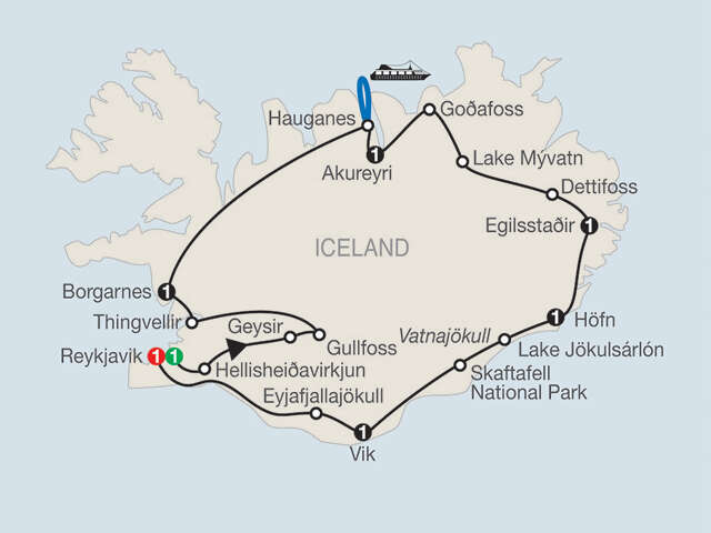 Full buffet breakfast daily; 7 three-course dinners with wine, including a welcome dinner in Reykjavik and a special farewell dinner in Reykjavik